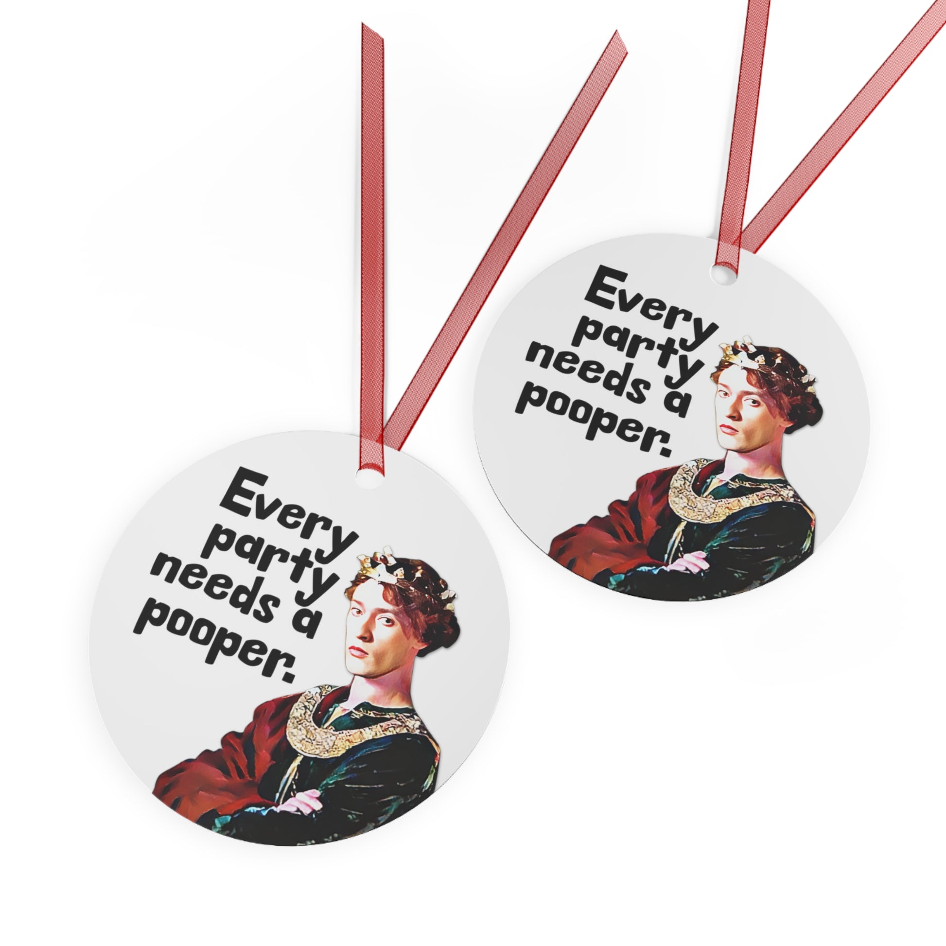 Metal Christmas tree ornaments are durable and will bring holiday cheer for years to come. The print is high-resolution with a glossy finish. Their surface is scratch and chip-resistant, so they can be stored together in a box. Note that there's one ornament per pack, and it already comes with a separate red ribbon for hanging..: White aluminum base with a glossy finish.: Round Shae.: Scratch and chip resistant surface.: Print on both sides.: Each ornament comes with a separate red ribbon for hanging .: NB! Each pack contains a single ornament